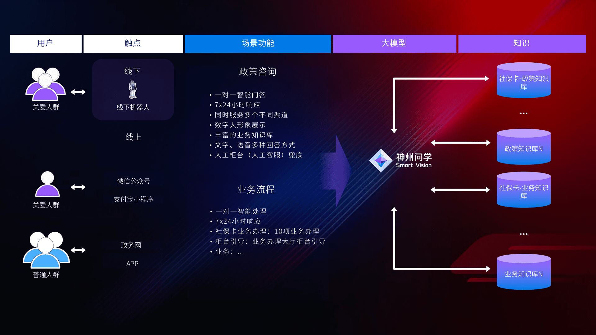 • 线上线下全覆盖:线上提供微信公众号、、支付宝小程序、、、政务网、、、app多种渠道,,,,与线下机器人形成完整服务体系。。。。